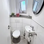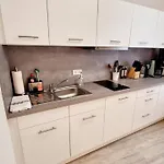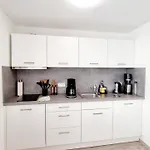 Ein Wasserkocher, ein Kühlschrank und Küchenutensilien sind auch in der Küche vorhanden. Die Unterkunft bietet den Gästen auch Ausstattung zur Kaffee- & Teezubereitung. Gerichte der italienischen Küche werden im Restaurant Pizzeria Aroma serviert, das ungefähr 5 Gehminuten von hier entfernt liegt. Der Flughafen Friedrichshafen befindet sich 24 Fahrminuten entfernt, und die Bushaltestelle Lammstrasse liegt etwa 10 Gehminuten vom Apartment entfernt.